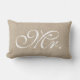 " M." dans la police blanche de manuscrit pour le marié/pour lui carreau lombaire chic de pays minable chic rustique de toile de toile de jute de jute de faux