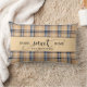 Accueil personnalisé douce maison jetez oreiller avec un plaid tartan bronzé. Facile de changer le nom de famille en utilisant le bouton Personnaliser (ou omettre de laisser vide). Fait un grand cadeau pour le ménage.