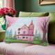 Coussin Rectangle Maison victorienne rose & Fleur de cerisier