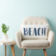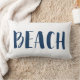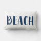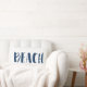 Parfait pour votre literie ou votre coin salon - cet oreiller lumineux bleu marine et blanc de la plage met l'accent sur la décoration de votre maison. Cette maison de bord de mer ou de plage dispose du mot "plage" sur le devant et d'une bande marine bleue et blanche sur le dos.