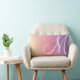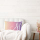 This modern lumbar pillow features a minimalist design with a white oversized monogram on a colorful yellow, pink, and purple gradient background.