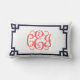Coussin Rectangle Monogramme de script clé grecque CEJ Navy et Coral