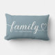 Coussin Rectangle Monogramme de script de cœur de famille bleu pouss