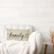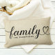 Un oreiller lombaire personnalisé avec Famille en script de cœur noir fluide avec un monogramme de nom de famille personnalisable sur un fond de lin beige texturé. Le design rustique inspiré de la ferme fait un accent charmant pour les salons, les entrées ou les espaces de rassemblement de la famille. Tout le texte est entièrement modifiable pour personnaliser avec le nom de famille. Un cadeau de bienvenue chaleureux.
