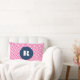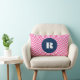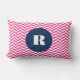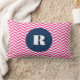 Coussin lombaire monogramme moderne et élégant avec motif en os de hareng rose chaud avec étiquette ronde bleu marine. Ce sera parfait comme un cadeau personnalisé. Ce design est disponible dans une variété de couleurs et de produits.