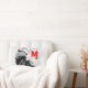 Un crampon abstrait sur un arrière - plan blanc fait un intéressant oreiller à jetons monogrammé. Assurez-vous de changer la première rouge pour personnaliser votre décor avec votre propre monogramme.