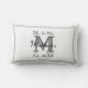 Un simple mais élégant oreiller lombaire de mariage personnalisé avec monogramme Mr. & Mrs. en noir et blanc. Personnalisez avec le nom de famille et l'initiale des jeunes mariés. Vous pouvez personnaliser pour tout votre cortège de mariage ! Cadeaux personnalisés pour les couples — un excellent cadeau de mariage ou d'anniversaire. Design chic noir et blanc réversible.