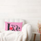 Un carreau lombaire d'amour avec un coeur rouge pour la lettre o dans le mot sur un fond rose. Bien adapté pour les filles de l'adolescence.