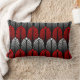 Lumbar coussin dans un motif de papier peint Art Déco vintage basé sur une plume stylisée - tons gris argenté / gris et rouge chinois profond sur un arrière - plan noir