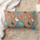 Coussin Lumbar dans un motif pénis minimaliste et moderne, accentué de points - teintes de bronze, de rouille, de crème et de turquoise, sur un arrière - plan taupe moyen