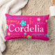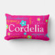 Joli rose vif, bleu vert aqua, jaune et blanc à motif jusqu'à 8 lettres coussin de nom personnalisé. Personnaliser avec votre propre nom lit actuellement Cordelia. La couleur Arrière - plan peut également être changée si nécessaire actuellement rose chaud brillant. Un cadeau parfait pour les filles pour personnaliser leur chambre. Art original et design par Sarah Trett exclusivement pour www.mylittleeden.com
