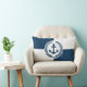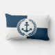 Nautical themed design with anchor and laurel wreath decoration over blue and white geometric background