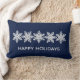 Coussin de Noël moderne simple avec une rangée de flocons de neige blanc argenté. Typographie minimaliste. Nettoyer le design simple. Toutes les zones de texte personnalisables. Contactez-nous pour obtenir de l'aide pour personnaliser ou customiser vos souhaits individuels. Joyeuses vacances !