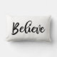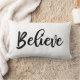 Croire écriture manuscrite | Oreillers de Vacances avec motif de buffle blanc et noir sur le dos. Design moderne de typographie de ferme par Blackberry Boulevard "Believe" écrit dans une police de caractères noir sur un arrière - plan de couleur blanche solide. Autres couleurs disponibles en magasin. Un coussin parfait accent pour votre décor de maison de vacances.