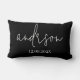 Coussin Rectangle Nom de famille de script de couleur noir uni perso