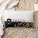 Elégant nom de famille monogrammed lumbar coussin est doté d'un médaillon de monogramme stylisé décoratif avec nom de famille et d'un design abstrait organique élégant dans une palette de couleurs noir, blanc et or. La partie supérieure est composée d'un simple arrière - plan blanc clair avec votre nom de famille présenté dans une typographie élégante. La partie inférieure présente une conception organique abstraite de rubans blancs translucides aux accents dorés sur un arrière - plan noir. Créez votre propre coussin de famille monogrammed. Conçu avec du texte modèle et des graphiques vectoriels, vous pouvez customiser en modifiant le nom de famille et le monogramme initial à l'aide du champ fourni. Customisez plus loin en accédant à la section calques pour visualiser les images et modifier la couleur arrière - plan ou d'autres éléments de conception selon votre goût, ou utilisez le bouton "contacter le concepteur" pour obtenir de l'aide. Un coussin familial moderne pour votre salon ou un canapé de chambre familiale, un coussin monogrammé élégant pour votre chambre ou votre chaise préférée, ou un cadeau maison moderne réfléchi pour les jeunes mariés ou les nouveaux propriétaires dans votre vie.