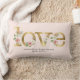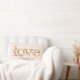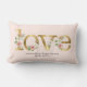 Un oreiller personnalisé présentant des lettres d'art de mots dans un ton doré avec des fleurs roses et blanches associées à vos noms et date de mariage. Élégant à utiliser pour votre réception de mariage ou comme cadeau de mariage ou de douche de mariée pour un couple spécial. Copyright, Audrey Jeanne Roberts.