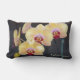 L'oeuvre originale de ZoeSPEAK sur ce Coussin Lumbar est une photo originale de fleurs d'orchidées, en particulier P. Chain Xen Queen, Yellow/Red Lip. La photo est un closeup, une vue détaillée des pétales de fleurs jaune clair entourant les lèvres rouges profondes au centre des fleurs. Il y a aussi une touche de lavande avant que les pétales ne deviennent jaunes. L'arrière - plan qui entoure les orchidées est composé de tons gris foncé à noir. Dans les coins inférieurs du design il y a des mots en écriture d'une couleur dorée claire. Le script dit "Orchidée Jaune" d'un côté du coussin, et "Orchidée jaune" (qui est "Orchidée Jaune" en français) de l'autre côté du coussin.