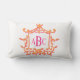 Rafraîchissez votre chambre ! Chic trellis de pagode rose et orange tendance et monogramme cadre fleuri coussin. Cliquez sur Personnalisez-le pour ajouter vos monogrammes (Premier, Dernier, Moyen dans cet ordre) et créer votre propre modèle unique de coussin lombaire. Partie de la Décoration de votre chambre | Collection Ikat. © Marisu Valencia™.