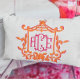 Coussin Rectangle Pagode rose Orange Cadre Fleur Monogramme Initiale