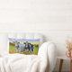 Si vous aimez les vaches, cet oreiller de lancer est sûr d'être un coup avec vous. Il présente l'image d'une paire de vaches laitières Holstein noires et blanches dans un pâturage d'automne coloré avec un ciel nuageux gris et jaune en début de soirée.