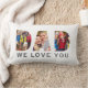 Créez un cadeau élégant et mémorable pour papa cette Fête des pères! Cet oreiller à jetons personnalisé présente un collage de trois photos de famille préférées des enfants (avant et arrière) conçu comme un design moderne et audacieux de typographie sans serif. Personnalisez le texte "Nous vous aimons" et modifiez le texte gris charbon et l'arrière - plan blanc si vous souhaitez coordonner avec votre décor maison.