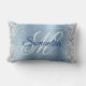 Créez votre propre parties scintillant en argent brillant et coussin lombaire en papier satiné bleu pâle et brillant. Les graphismes brillants sont des caractéristiques sur les bords droit et gauche. L'avant est doté d'un monogramme de scénario de calligraphie marine et blanche. Vous pouvez customiser la couleur et le style de police pour créer votre propre décor maison pour elle. Tous les éléments graphiques et graphiques girly de ce design seront imprimés comme une photo numérique.