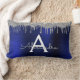 Argent et Marine Blue Faux Parties scintillant à étincelles métalliques brossé Monogramme en métal Nom et Coussin Lumbar initial. Cela rend le cadeau parfait pour 16 ans, mariage, douche nuptiale, anniversaire, baby shower ou bachelorette pour quelqu'un qui aime le luxe glam et les styles chic.