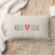 Custom Modern Hello LOVE Valentines Couple Cadeau Lumbar Coussin Lombaire Lombaire personnalisé offre un design typographique simple et minimal "Hello Love" avec un coeur. Personnalisez le texte majuscule. pour un couple ou une famille, un devis ou un autre texte préféré.