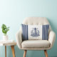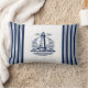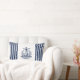 Coussin lombaire marine rayé bleu avec badge phare. Design frais et clair pour la décoration nautique et côtière. Pour tous les marins et tous ceux qui aiment le nautique, côtier, Nouvelle-Angleterre, Hamptons, Nantucket Style.