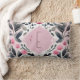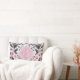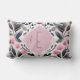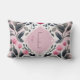 Un coussin monogramme gai et dynamique avec étiquette central entouré de trèfle rose, mauve, fleurs filmées et feuilles de sauge douce. Personnaliser à la combinaison !
