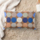 Lumbar coussin dans un milieu du siècle moderne imprimé géométrique de points géants, dans une grille de neuf couleurs coordonnées - tons beige, crème, terre cuite, clair, moyen et bleu foncé, sur un arrière - plan taupe