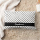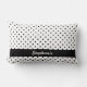 Coussin lombaire motif de pois noir et blanc personnalisé. Pois noirs sur un arrière - plan blanc et un groupe noir avec votre nom personnalisé.