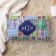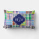 Coussin Rectangle Preppy Patchwork Madras Navy Quatrefoil Monogramme