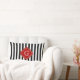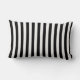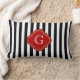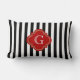 Coussin Rectangle Rayures blanches noires, monogramme rouge