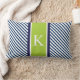 Coussin Rectangle Rayures et monogramme de vert de bleu marine