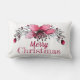 Un Coussin Festive Rouge et Blanc Joyeux Noël conçu avec Cranberry Red Floral et Holly sur un arrière - plan blanc avec le texte : Joyeux Noël. L'inverse est un rouge correspondant.