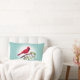 Beau cardinal rouge debout sur une branche d'arbre sur Coussin arrière - plan turquoise. Le texte, seulement sur le devant, peut être personnalisé.