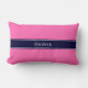 Coussin Rectangle Rose Chaud Uni #2, Monogramme avec Ruban Bleu Mari