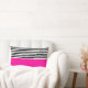 Coussin Rectangle Rose néon avec rayures noires et blanches
