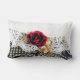 Coussin Rectangle Rose rouge romantique et dentelle blanche