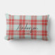 Coussin élégant chic accent plaid dans des couleurs vives modernes de vacances, rouge et turquoise. Le design comprend un motif de tweed de couches superposées qui entrelacent les couleurs de base individuelles et une texture graphique claire pour créer un look plus doux, flanelle comme. Grandes lignes de texte centrées dans une police de caractères calligraphiques pour le nom de famille ou le sentiment court (par exemple, "Merci", "Joyeuses fêtes"). Une ligne de texte secondaire dans une police sans serif minimaliste sous pour les dates, les noms, etc. (laissez vide pour supprimer). Le dos du coussin plaid motif seulement. Magnifique accessoire décoratif qui peut être personnalisé pour un quotidien ou une occasion spéciale.