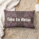 Le temps de se détendre avec ce coussin lombaire parfait pour une chambre rustique ou cabine. Combinez la beauté de la nature avec un effet kaléidoscope et le résultat est ce magnifique, abstrait, rustique coussin lombaire. Les lignes profondes de l'écorce en bois créent des rayures et un beau contraste de couleur dans cet abstrait motif. "Time to Relax" apparaît dans une police blanche qui peut rapidement et facilement être customisé à votre désir.