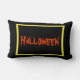 Ce coussin déco ferait un grand ajout à votre décor de vacances. Conçu avec une chauve-souris en vol contre un ovale rouge et orange. L'envers a le signe "Halloween" imprimé en gros caractères effrayants. Une bordure jaune a été ajoutée. Un dossier noir est fait de chaque côté. Ces coussins sont disponibles en styles, tissus et tailles assortis.