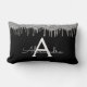 Parties scintillant d'étincelle en argent et noir Nom et Coussin Lumbar initial. Cela rend le cadeau parfait pour 16 ans, mariage, douche nuptiale, anniversaire, baby shower ou bachelorette pour quelqu'un qui aime le luxe glam et les styles chic.