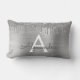 Faux d'argent Parties scintillant d'étincelle métallique broyée Monogramme de métal brossé Nom et Coussin Lumbar initial. Cela rend le cadeau parfait pour 16 ans, mariage, douche nuptiale, anniversaire, baby shower ou bachelorette pour quelqu'un qui aime le luxe glam et les styles chic.