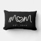 Conception d'oreiller lombaire simple avec écriture blanche et cœur unique pour maman, mettant en vedette une typographie d'écriture propre avec un petit détail de cœur intégré dans le mot maman, créant un point focal simple et significatif. Le fond noir donne au design un aspect moderne et classique tout en gardant l'année d'établissement personnalisée facile à mettre en évidence.
