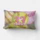 Coussin lombaire pour femmes est coloré et girly mais avec une touche de texture grunge avec des boules de softball rose et jaune vif et personnalisable nom et numéro de maillot - par katz_d_zynes