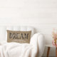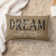 Country chic nursery coussin avec un arrière - plan rustique imprimé burlap, le dicton "rêve grand petit", et les statistiques de naissance du nouveau-né.