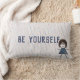 Coussin Rectangle Stick Girl en robe Denim avec citation